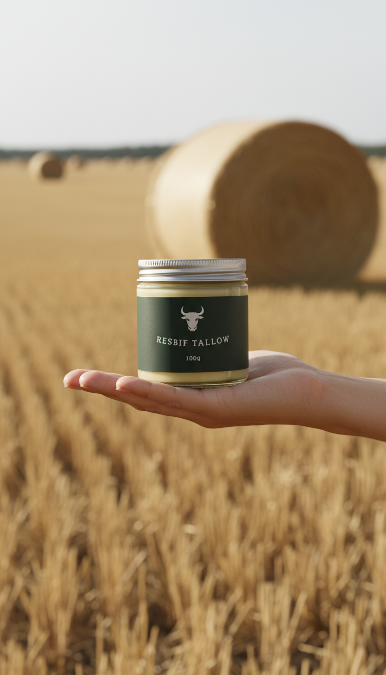Nuestro sebo de res para la cara y el cuerpo proviene exclusivamente de vacas españolas alimentadas 100% con pasto, criadas bajo prácticas de ganadería regenerativa. Esto garantiza un ingrediente limpio, sin antibióticos, hormonas ni pesticidas, y libre de químicos tóxicos.