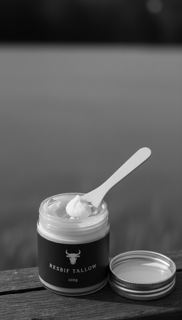 - Sebo de vacuno 100% natural, proveniente de ganado alimentado con pasto ecológico, rico en ácidos grasos esenciales que nutren profundamente la piel, reparan la sequedad y restauran su elasticidad.